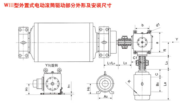 供移動(dòng)式帶式輸送機(jī)配套使用的內(nèi)驅(qū)動(dòng)裝置,具有結(jié)構(gòu)緊湊,占用空間面積小,使用維護(hù)方便,操作安全可靠,密封性好等特點(diǎn),能適用于粉塵濃度大、超市泥濘的工作場(chǎng)所。