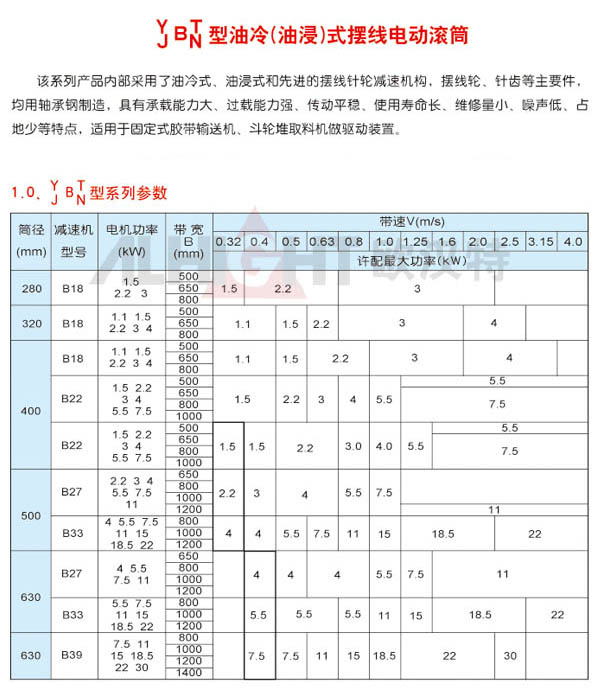 YBT型油冷(油浸)式擺線電動滾筒,其內(nèi)部采用了油冷式、油浸式和先進(jìn)的擺線針輪減速機(jī)構(gòu)。擺線輪、針齒等主要件,均用軸承鋼制造。所以具有承載能力大、過載能力強(qiáng),傳動平穩(wěn)、使用壽命長、維修量小、噪聲低、占地少等特點(diǎn),廣泛適用于固定式膠帶輸送機(jī)、斗輪堆取料機(jī)做驅(qū)動裝置...