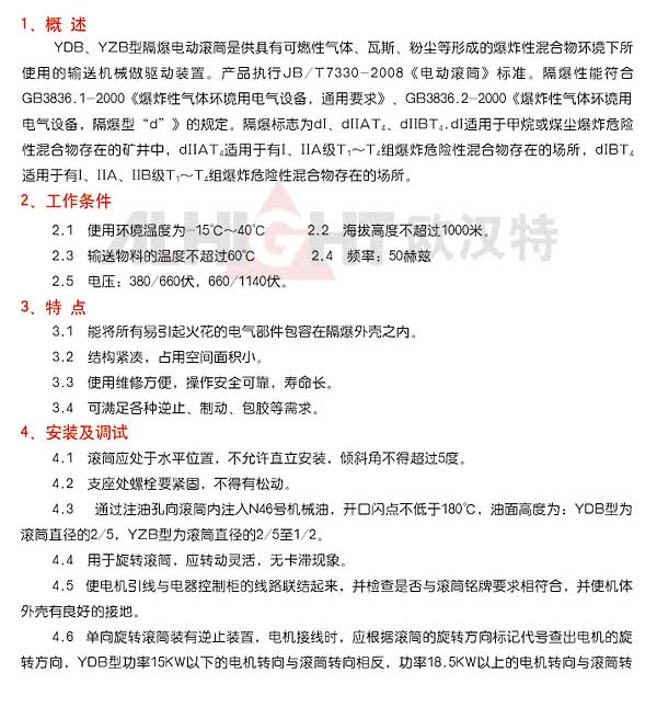 該產(chǎn)品是供具有可燃性氣體、瓦斯、粉塵等形成的爆炸性混合物環(huán)境條件下所使用的輸送機(jī)械做驅(qū)動(dòng)裝置,隔爆標(biāo)志位dl、dllAT4、DllBT4。dl適合于所有甲烷或煤塵爆炸危險(xiǎn)性混合物存在的礦井中,dllBT4I適合于有I、IIA級(jí)T1~T4組爆炸危險(xiǎn)性混合物存在的場(chǎng)所,dllBT4適合于IIIAIIB級(jí)T1~T4組爆炸危險(xiǎn)性混合物存在的場(chǎng)所。可滿足各種逆止,包膠等要求。