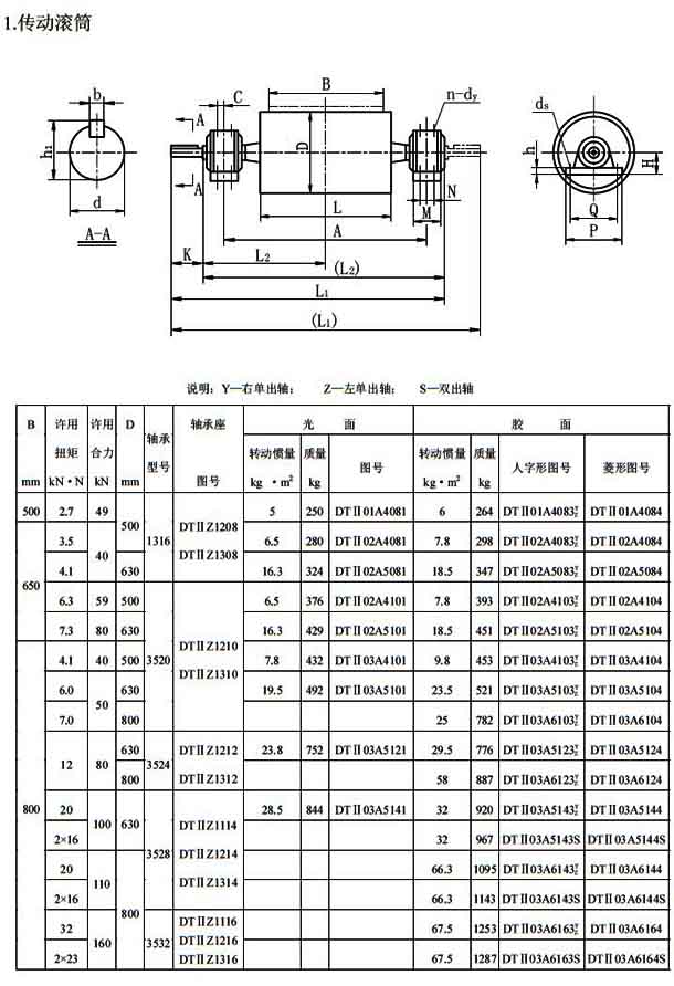 傳動滾筒由軸、軸承座、輻板、筒體組成,表面覆蓋橡膠以增大驅(qū)動滾筒與輸送帶間的摩擦系數(shù),軸承座內(nèi)裝調(diào)心滾子軸承,確保了支撐的穩(wěn)定性,又確保了轉(zhuǎn)動靈活。